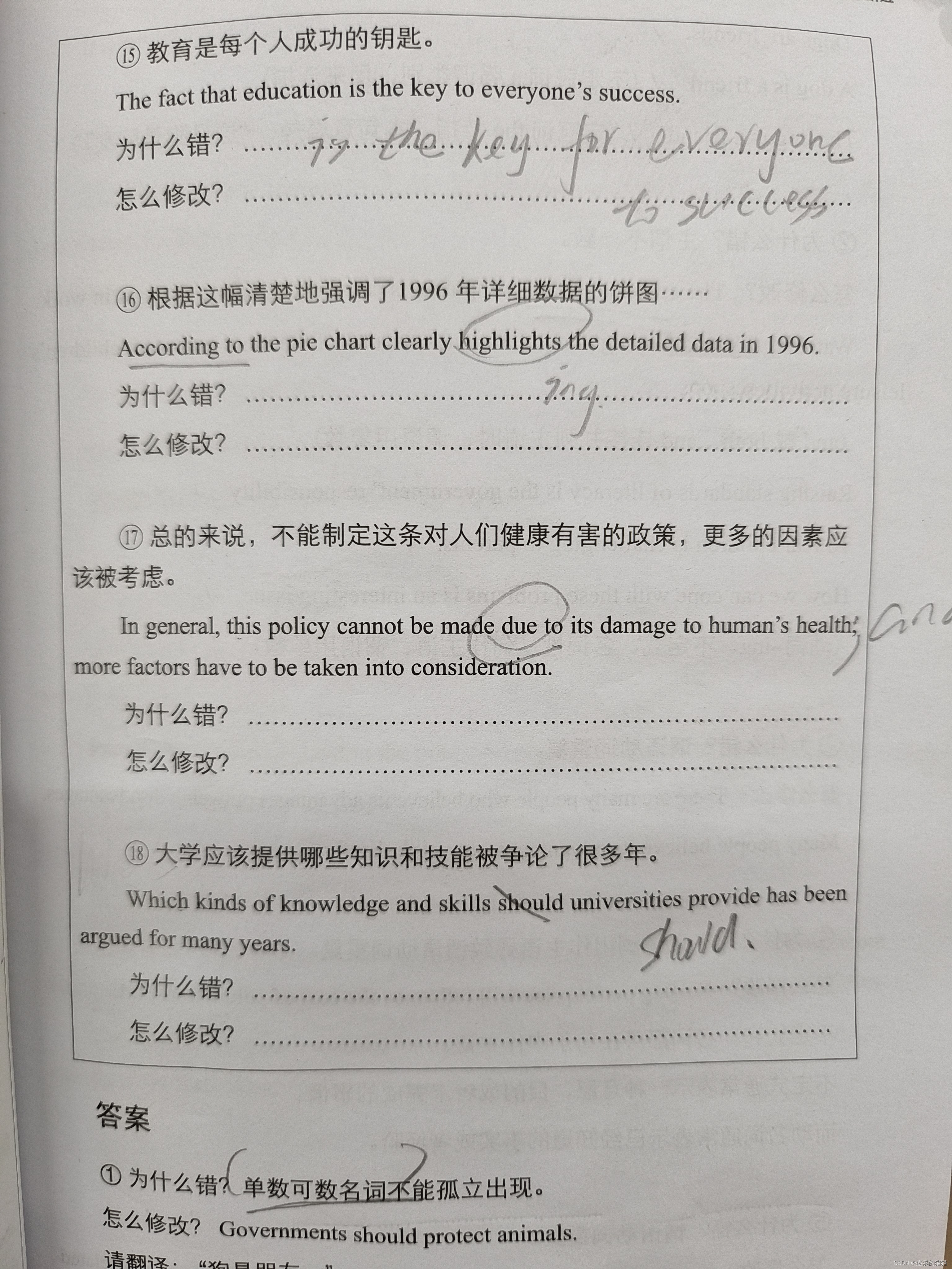 其实,真的就是很简单的语法问题,可数名词你出现是又不加复数又不加the,来指代,这不是睁眼错吗?