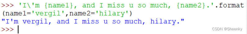 'I\'m {name1}, and I miss u so much, {name2}.'.format(name1='vergil',name2='hilary')