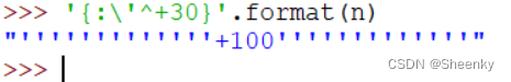 n=100 '{:\'^+30}'.format(n) #不保留正号,仅保留负号 '{:\'^30}'.format(n) '{:\'^-30}'.format(n)