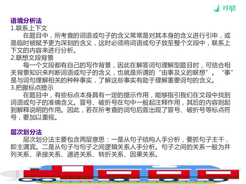 2.防止要点遗漏。要点遗漏,答案便不完整。防止的方法就是对相关文字作层次分析。