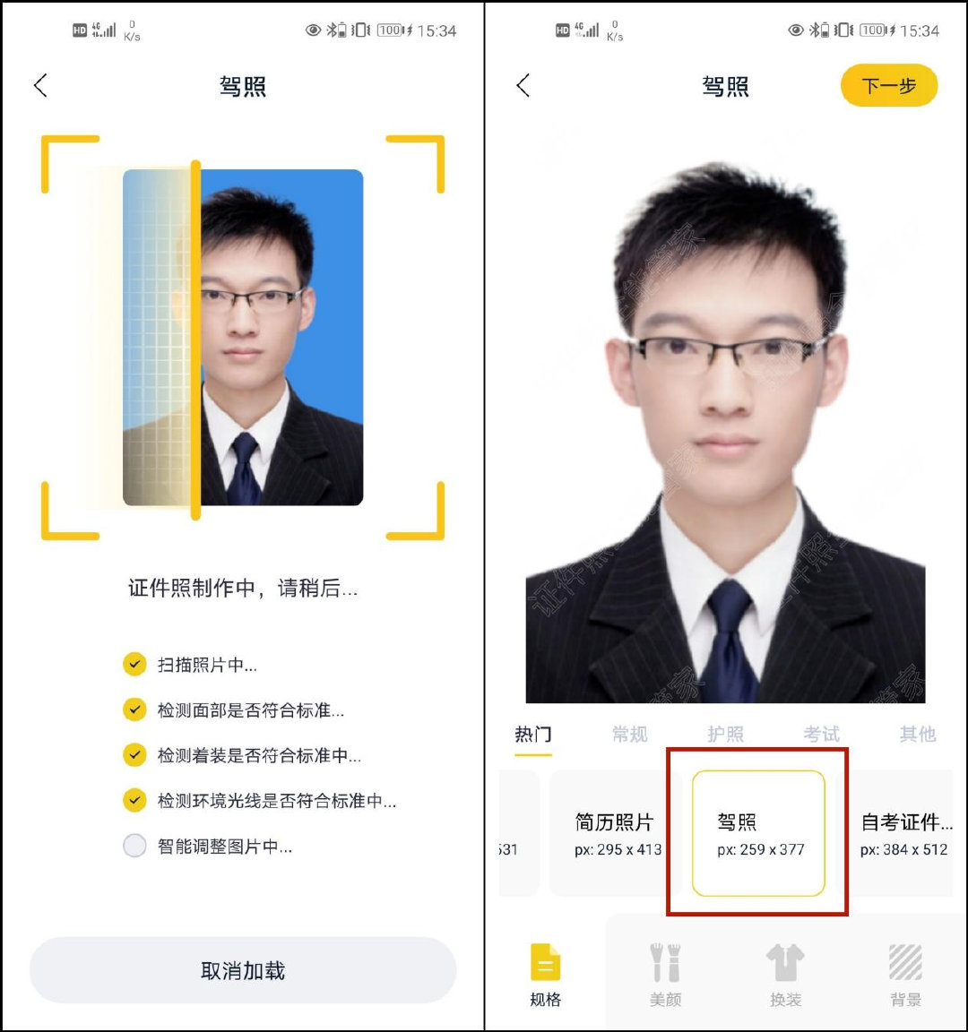 ③ 对驾驶证上面的照片,我们也可以添加一些适当的美颜效果或者是换装,注意不能与本人差距太大呦,大家酌情设置。最后我们将照片保存电子照,就可以得到一份驾驶证照片啦。