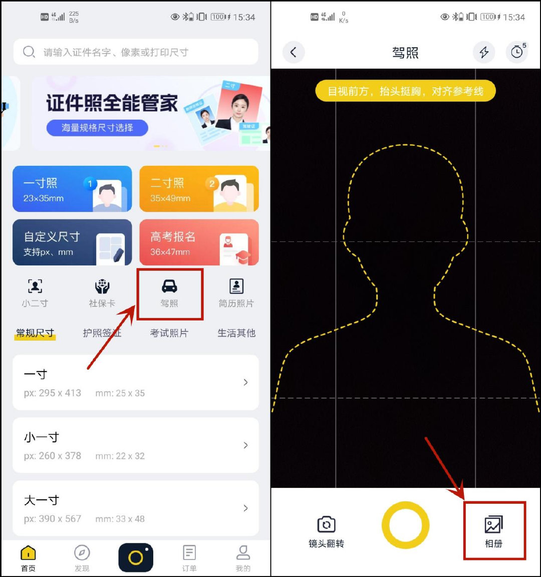 ① 首先,将软件在手机上打开,在页面中点击【驾照】,进入后就可以在手机相册中把照片选择添加进来调整。