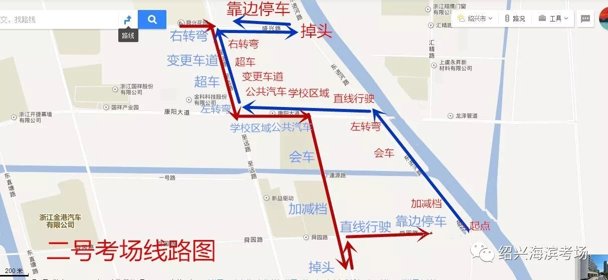 以下是我要介绍的考试路线,我选取了蓝色的驾驶路线,大家可以自行比对: