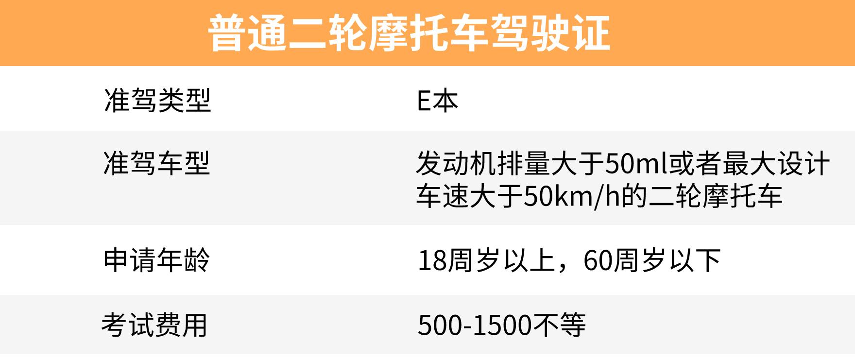 摩托车驾照一般分三轮摩托D照和两轮摩托E照两种类型