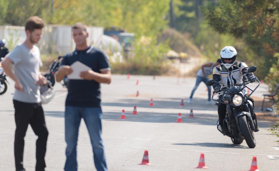 绕杆:在一条直线上,有5根杆子,要求以S型绕过5根杆子,然后再绕回来,不能压两边边线、不能撞杆、不能熄火。