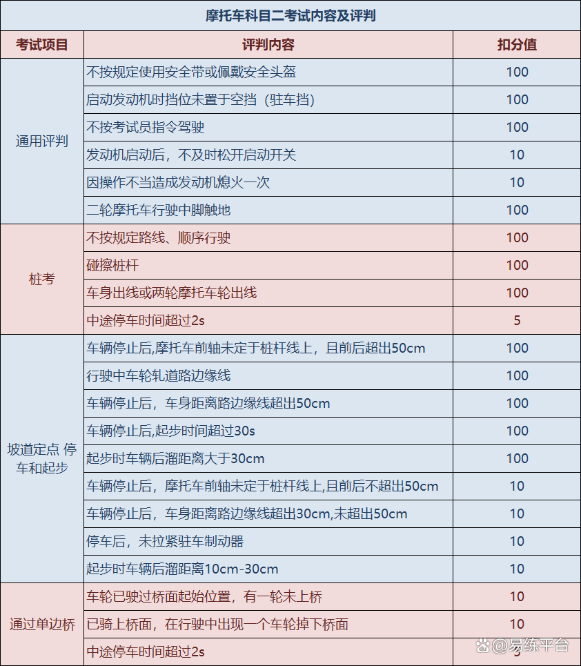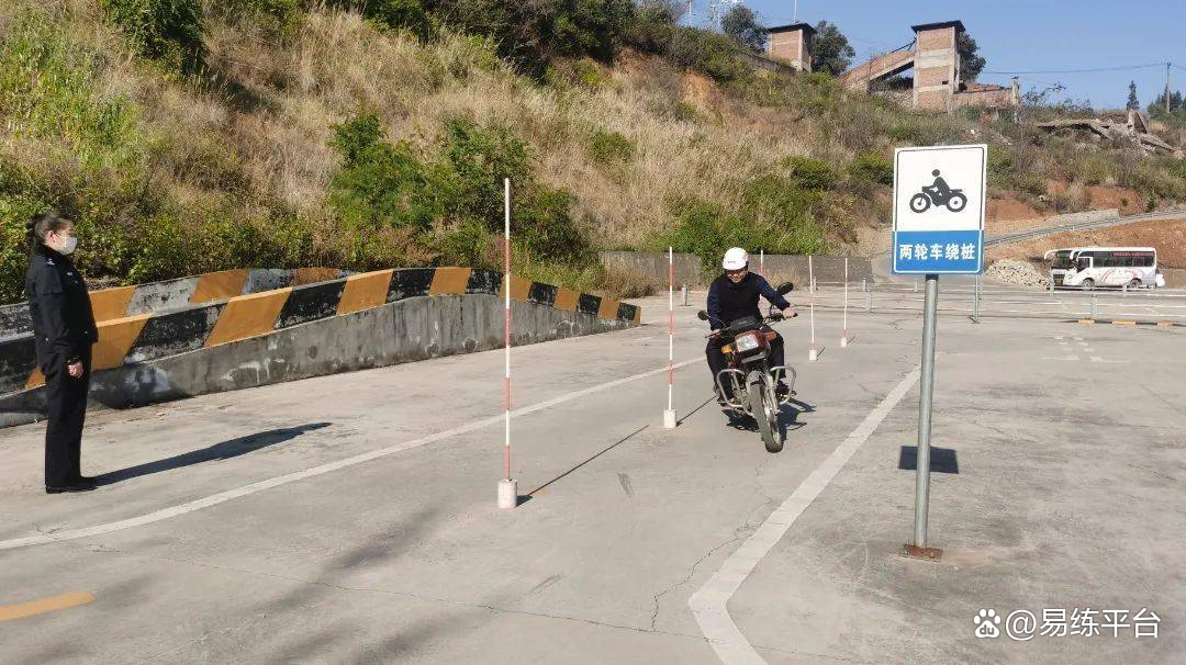 需要开启摩托车,绕过固定桩杆,不触碰桩杆为合格标准。
