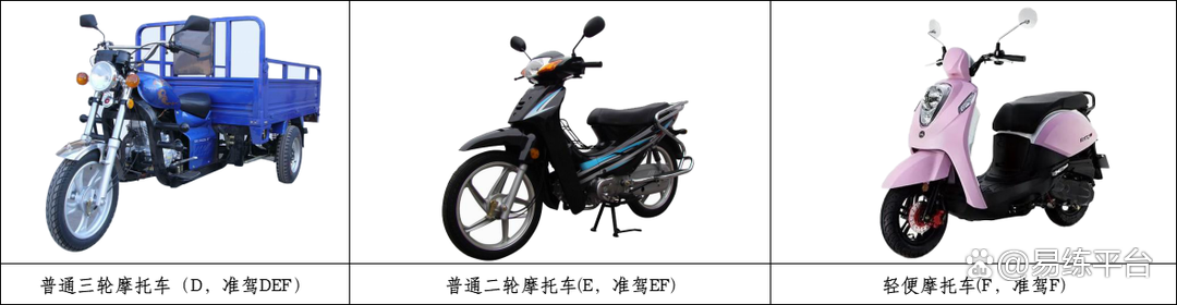 可驾驶三轮摩托车(含正三轮和偏三轮),无发动机排量和设计车速限制,也包含E、F照的准驾车型,18-60岁可报考;
