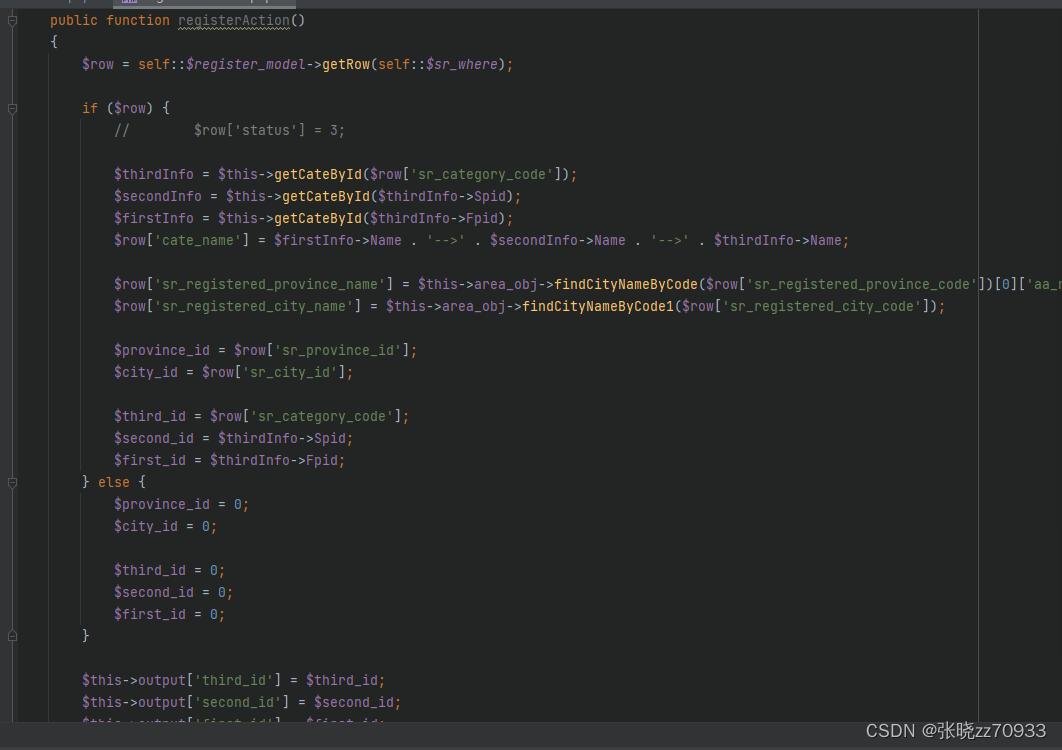 $thirdInfo = $this->getCateById($row['sr_category_code']);