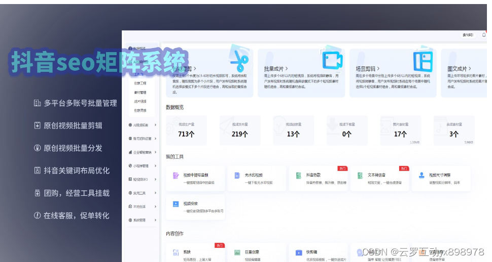 2. 视频批量剪辑、分发:抖音seo矩阵源码的搭建还需要能够实现视频内容的批量剪辑,及定时分发任务,解决企业部门协同问题