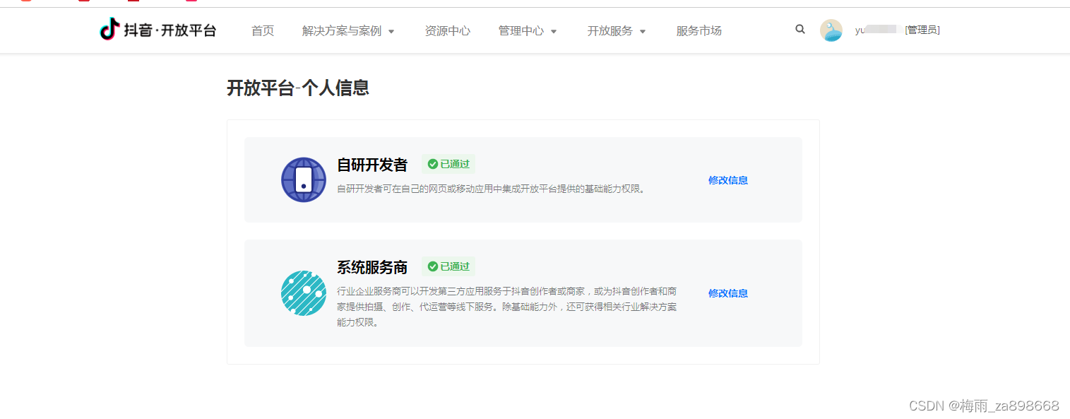 (3)开放平台应用权限申请,其中涉及到的应用主要有:视频及发布权限、关键词管理权限、授权动态续期、外部用户数据、视频数据、关键词视频管理、用户关注及粉丝列表、企业号意向客户管理、企业号私信管理、评论管理等20+应用权限,来保证系统整理功能的完善及实用。
