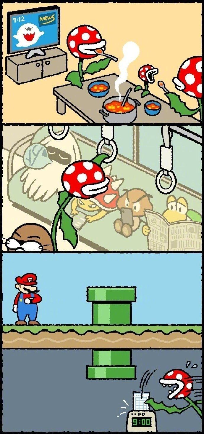 超级玛丽中的食人花,为了生活也得挤地铁上班打卡啊、