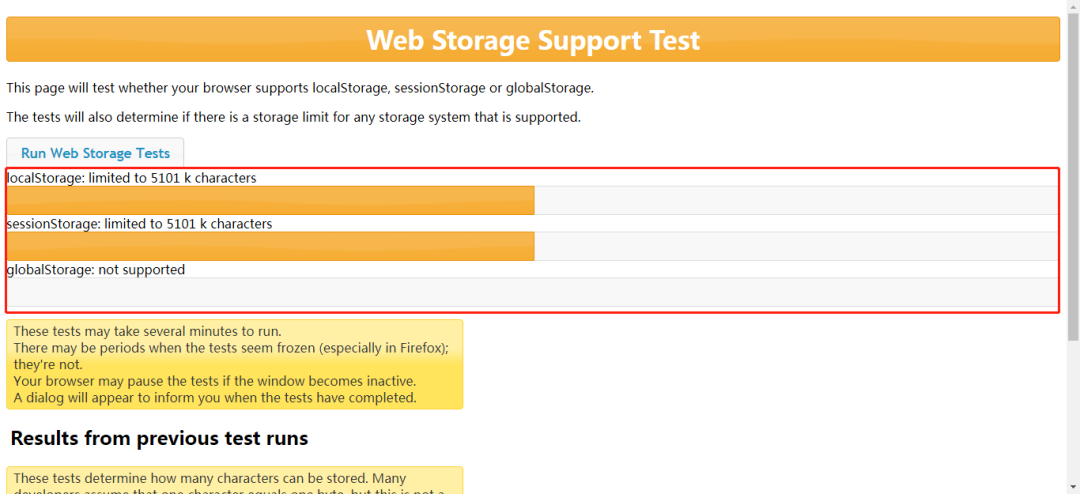 经测试,我的 localStorage 和 sessionStorage 都是 5MB 大小,不支持 globalStorage 存储。