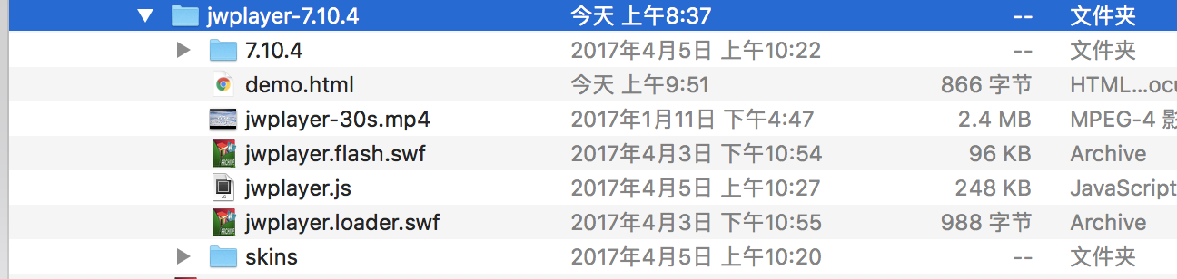 下载jwplayer,我这里使用的7.10.4的免费版本,解压后得到如下目录