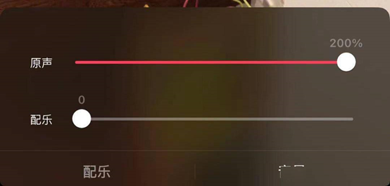 发布视频,一定要去用抖音里的音乐素材,这样你的视频就会和音乐绑在一起,如果跳过这一步,特别是当你的视频能够用到排前几名的音乐的时候,你的马太效应会越来越强,否则就会少很多流量;如果一定坚持用自己的选的音乐,也可以,在选择抖音音乐的时候,把原声升到200,配乐降到0,如下图