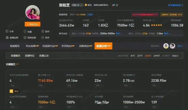 尽管一年未播,但张柏芝的带货实力丝毫不减:新抖数据显示,张柏芝在10月13日共开播4场,累计总销售额破亿,直播间累计观看人次达7165.8万,稳居抖音带货榜第一名。凭借这次直播,张柏芝涨粉260.03万,累计粉丝数将近2500万。