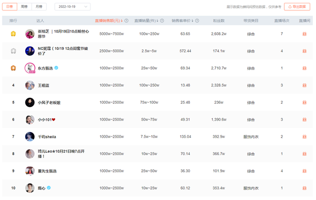 而在10月19日开启的第二场直播当中,张柏芝也以断层的优势,登上了带货榜第一名,直播间销售额比抖音顶流东方甄选高了近5倍。