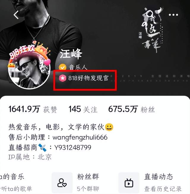而像前文提到重新开始直播的张柏芝和汪峰,背后都有抖音电商的痕迹。比如汪峰接连两次直播的标题都是“818好物节与你分享好物”,在抖音账号的个人简介上更是加上了“818好物发现官”的头衔。不难看出,汪峰复播的时机,是为了给抖音电商重要的促销节日造势。