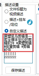 自定义描述可以加入话题,在每个标题之间用回车键分隔,有空格的话题可以增强曝光率。下面是三个标题的例子,第一个标题中包含三个话题。当保存描述后,软件会自动生成一个标题.txt文件,每次发布时会随机调用其中之一。