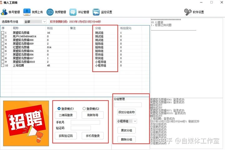 懒人工具箱已经推出了近两年,期间遭遇了强制失效和抖音多次更新的问题。最近,我们进行了软件重构,同时有史诗级别的优化更新。请先看看我们最新的登录界面和账户管理界面。我们目前提供两种扫码登录方式,手机接受验证码登录可以有效防止抖音跳过核对程序。我们还对账户的组织与管理方式进行了优化。现在,您可以随意自定义分组名称以进行新增。只需勾选相应的账户即可轻松进行分组更改,从而使得发布管理更加高效便捷。