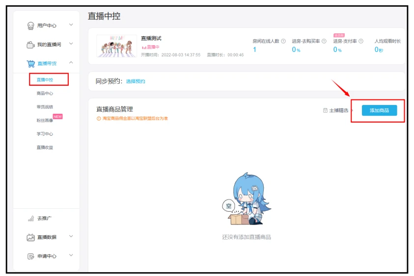 开播后在直播中控添加商品【直播带货——直播中控——添加商品】