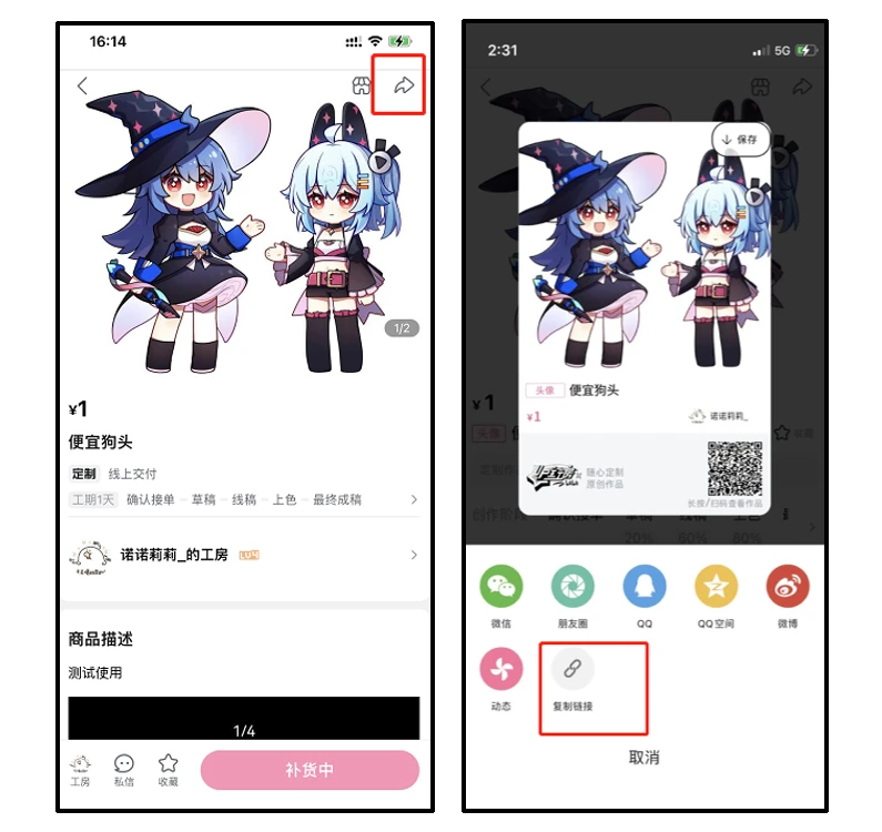 1、 在工房获取商品链接