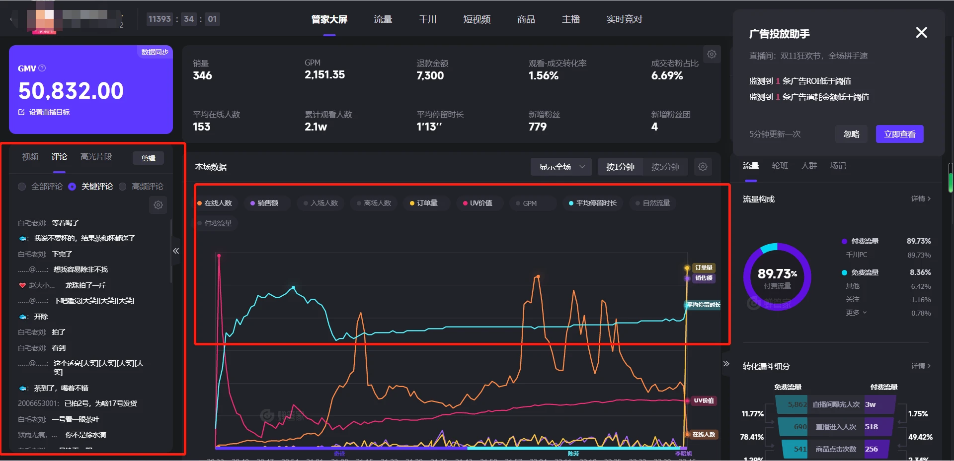 6、数据分析:对直播间的数据指标进行监控和分析,包括观众互动数据、销售数据、粉丝画像等,及时发现问题和优化策略。